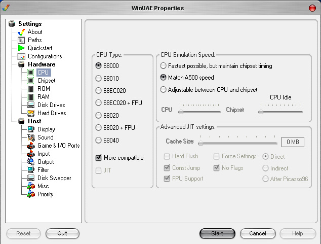 * نوع پردازنده آمیگا (68000، 68020، 68030 و غیره) را انتخاب کنید.